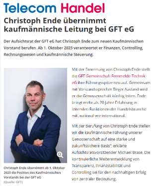 GFT gewinnt mit GOTTWALD GmbH & Co. KG und ELEKTRO WIGO WIEN eG zwei neue Mitglieder